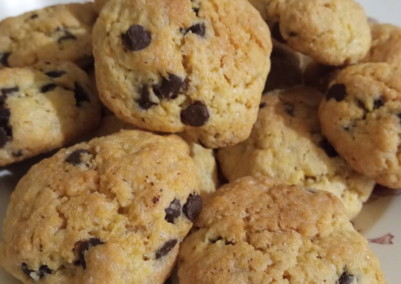 - Ajouter les pépites et former des boules avec les mains. Les disposer sur une plaque recouverte de papier cuisson. Mettre au four 15 min a 200